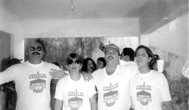| A meninada com o estandarte do bloco Cururu na Vassoura |